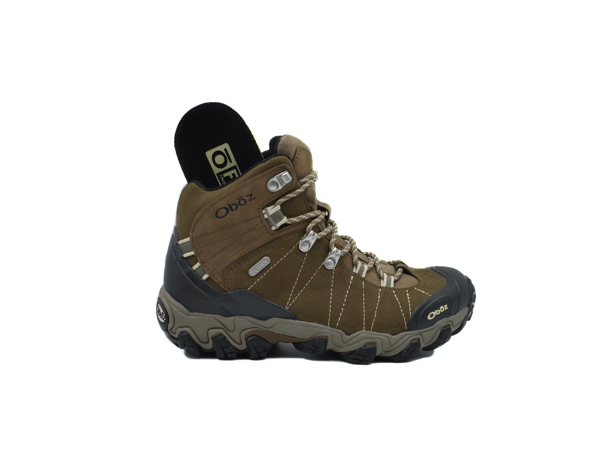 Waterproof nubuck leather. Oboz B-DRY waterproof/breathable membrane. molded rubber toe cap & heel counter